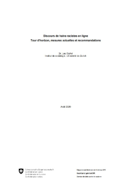 Discours de haine racistes en ligne: Tour d’horizon, mesures actuelles et recommandation