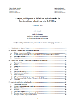 Analyse juridique de la définition opérationnelle del’antisémitisme adoptée au sein de l’IHRA