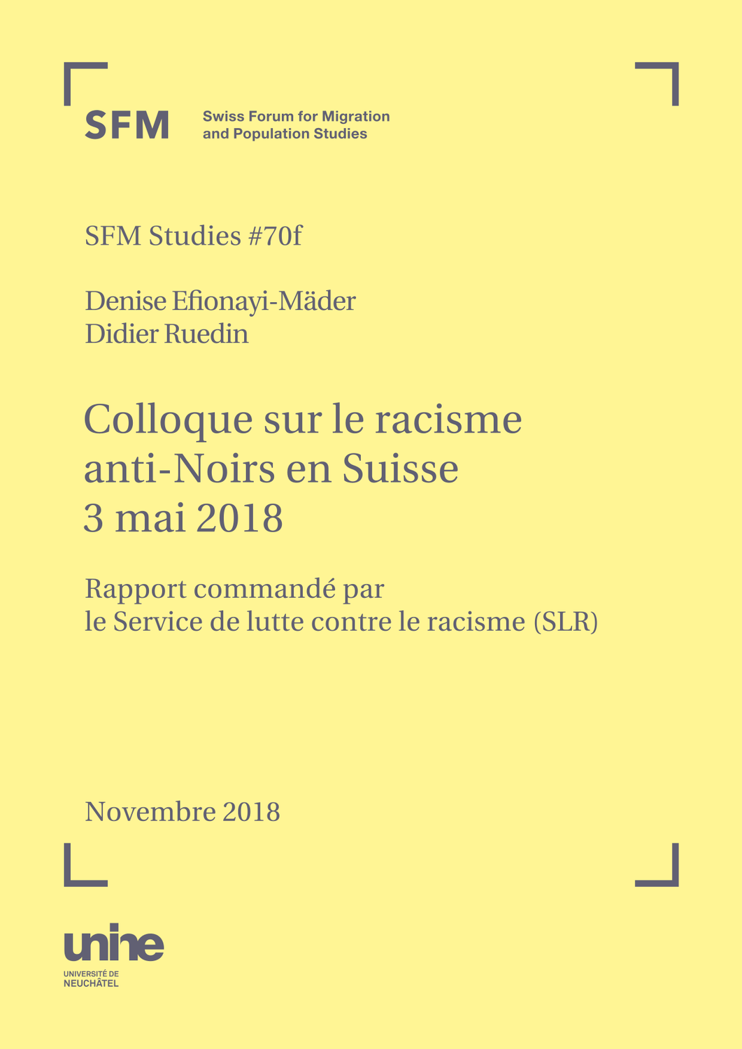 La Commission fédérale contre le racisme (CFR) a quant à elle publié une analyse juridique sur le phénomène du racisme anti-Noirs en Suisse, dont elle a tiré une série de recommandations. Enfin, fin avril 2018, l’Office fédéral de la statistique (OFS) a publié les résultats d’un module d’approfondissement de l’enquête sur le Vivre ensemble en Suisse (VeS), qui se penche sur les opinions de la population suisse à l’égard des personnes noires. Un colloque a été organisé le 3 mai 2018 pour communiquer les principaux résultats de ces travaux ; il a aussi permis un échange entre les chercheurs, les professionnels des organisations concernées et les autorités.Le rapport du colloque résume les résultats principaux du colloque ainsi que des études et enquêtes.