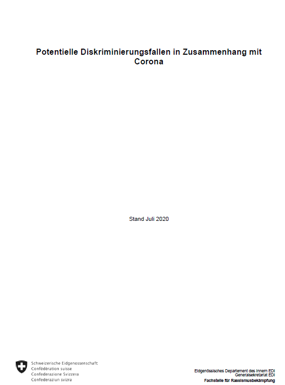 Das Arbeitspapier «Potentielle Diskriminierungsfallen in Zusammenhang mit Corona» ist eine Zusammenstellung von möglichen, vermuteten und bereits entdeckten Problemfeldern, die sich im Zusammenhang mit der Corona-Krise und den zu ihrer Eindämmung angewandten Massnahmen im Feld von (rassistischer) Diskriminierung und Grundrechtsschutz mittel- und langfristig ergeben. Das Dokument richtet einen spezifischen Fokus auf Personengruppen, die sich bereits vor der Corona-Krise in prekären Situationen befanden und durch die Krise Gefahr laufen, zusätzlicher Marginalisierung ausgesetzt zu sein.